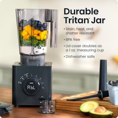 Feature HIGH BLENDING CAPACITY: With a 48 oz shatter-resistant Tritan blending jar, the Obliterator has enough space to make shakes and smoothies for everyone. The durable construction even allows for blending hot liquids with the lid cover removed (cover with a towel to avoid excess splatter.)