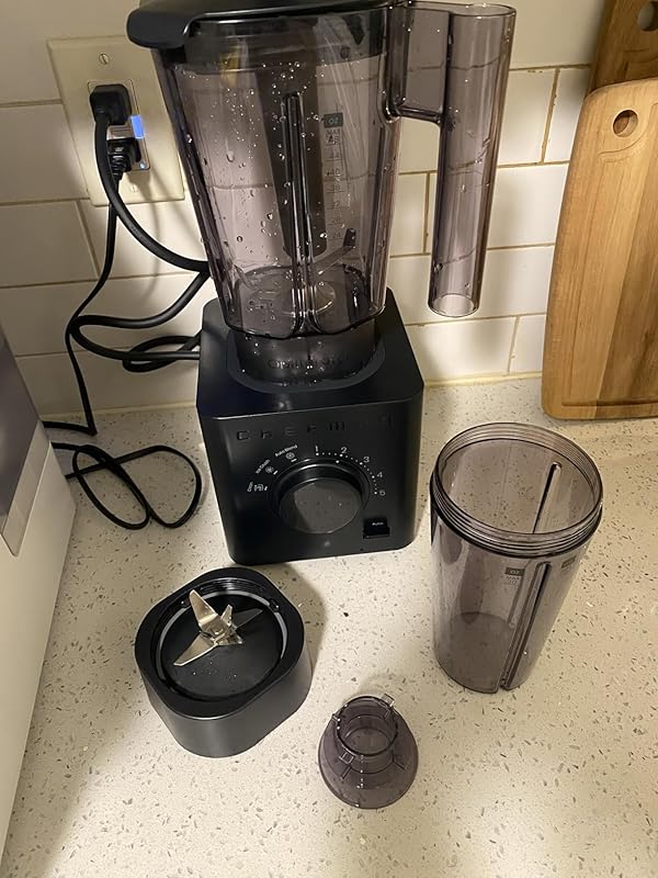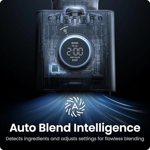 About this item ICE-CRUSHING POWER: This 1380W high powered blender obliterates anything in its path! Its advanced airflow breaks down ice with ease while staying quiet throughout operation, making it a perfect smoothie blender or crushed ice maker. HIGH BLENDING CAPACITY: With a 48 oz shatter-resistant Tritan blending jar, the Obliterator has enough space to make shakes and smoothies for everyone. The durable construction even allows for blending hot liquids with the lid cover removed (cover with a towel to avoid excess splatter.) AUTO BLEND: Optimize your blending without any guesswork! The Auto Blend function analyzes every ingredient added, automatically customizing the blend settings for your ideal consistency every time. It’s a professional blender that does the hard work for you. INTUITIVE CONTROLS: The dial control panel includes 5 blending speeds and a pulse option to finetune your blending. Presets include a countdown timer and LED alerts notify you when you need to “Fix Jar” or “Add Liquid.” TWO WAYS TO CLEAN: Keeping this blender for kitchen clean is a breeze. Either run the “Clean” preset with soap and water or throw the accessories directly into the dishwasher and avoid any hassle. The innovative blunt-blade design ensures safety while cleaning without sacrificing performance. ART ON THE COUNTERTOP: Created at the intersection of form and function, this 2024 Red Dot Design Award-winning smoothie maker emulsifies and purees with ease and looks beautiful doing it. Its black-matte finish blends in effortlessly with any kitchen décor. ACCESSORIES INCLUDED: Everything you need for this one-stop blender mixer. Purchase includes a 2-in-1 tamper and scraper tool to tackle any blending challenge. The lid features a BPA free cover which doubles as a 1 oz liquid measuring cup. TRUSTED QUALITY: UL approved with advanced safety technology for long-lasting durability. Backed by a 5-year warranty provided by Chefman. 1380W/120V—C27-0-2M-US1