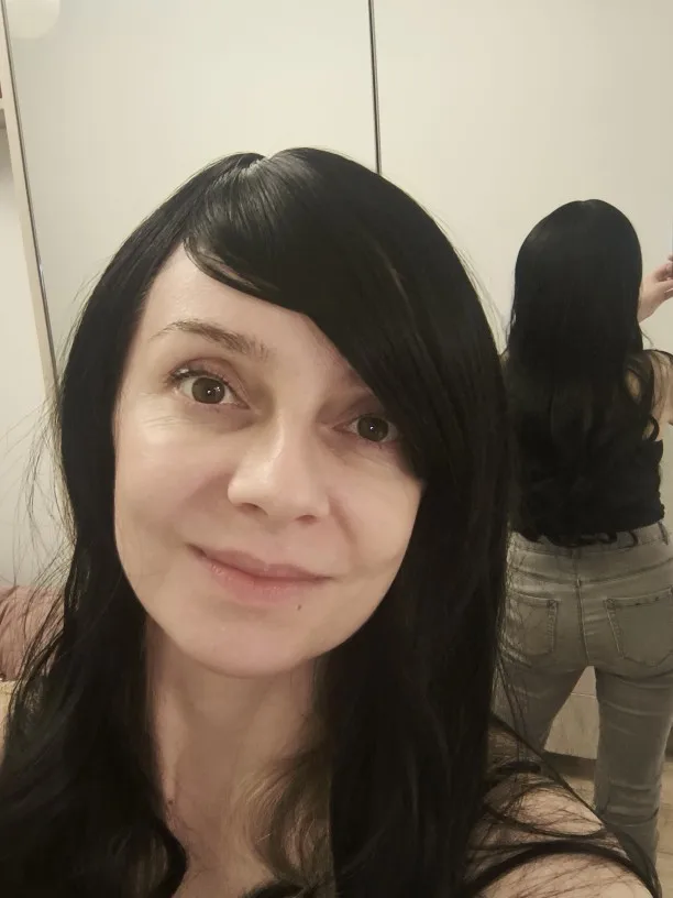 The hair looks very good. the hair is long, it comes in the mesh, so it is not tightly tangled. you can assume it right away. This wig cost PLN 23, so it's cheap. in a medical store this length would cost several times as much. I am happy with this purchase