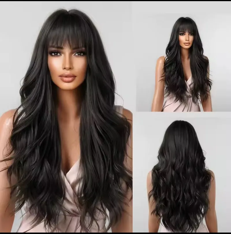 Wavy Wigs for Women with Bangs Long Natural Synthetic Hair Wig Daily
